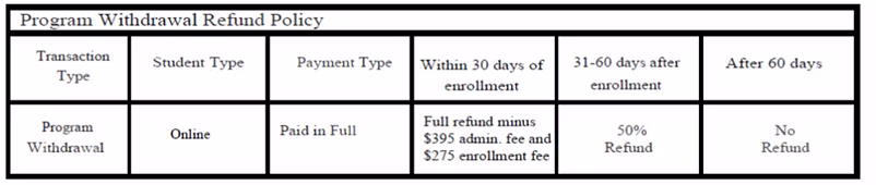 PROGRAM WITHDRAWAL – REFUND POLICY